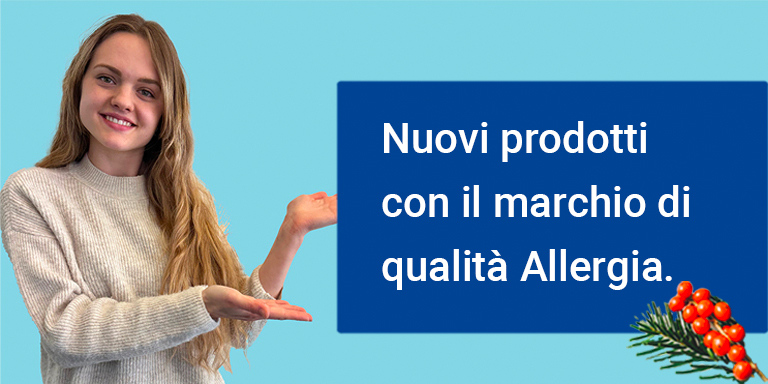 Anche se è allergico alle uova o al latte, soffre di celiachia o ha un'intolleranza al lattosio, non deve rinunciare a biscotti e altre prelibatezze. Grazie al marchio di qualità Allergia, può riconoscere a colpo d'occhio quali prodotti sono adatti alle sue esigenze. Uniscono gusto e sicurezza consentendovi di godersi le festività in tutta tranquillità.