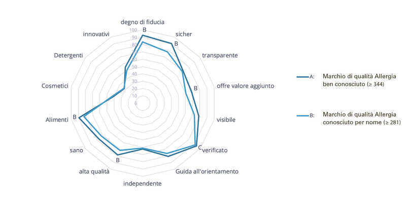 Le persone che conoscono il significato del marchio di qualità Allergia lo considerano particolarmente affidabile e degno di fiducia. Riconoscono in esso un maggiore valore aggiunto, lo associano alla qualità e valutano di conseguenza i vantaggi del marchio di qualità.